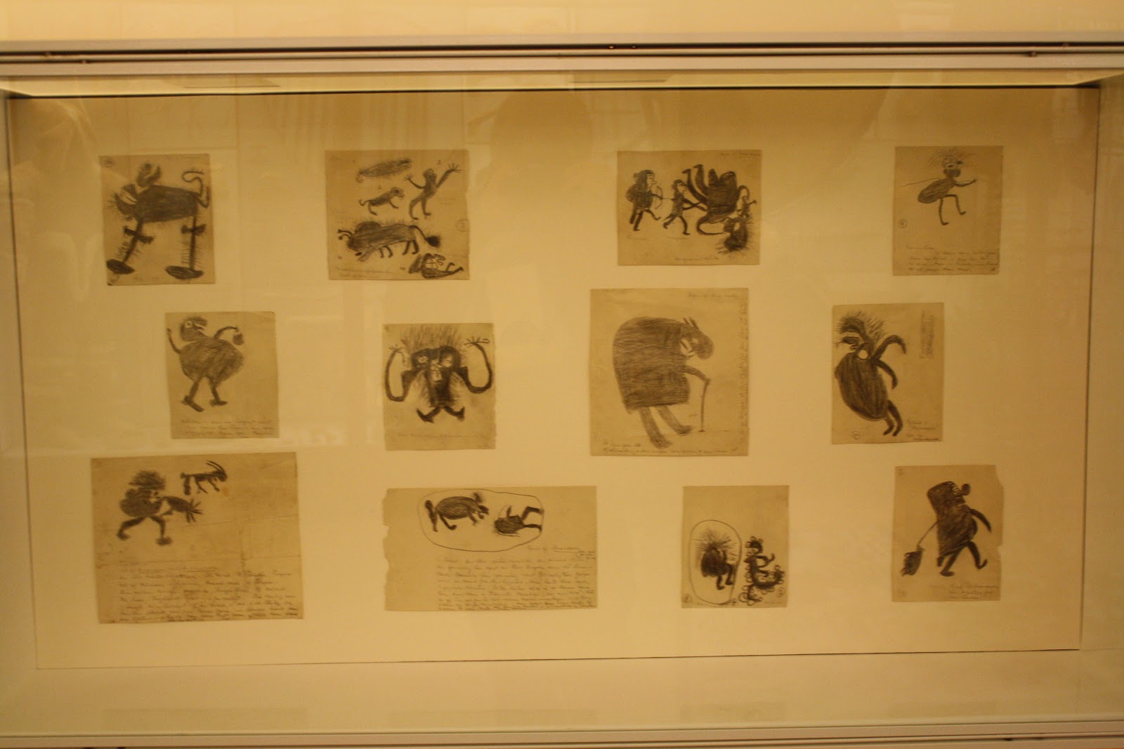Nämä kuvat ovat muistaakseni inuiitti-sahamaanin piirtämiä 30-luvulta. Ensimmäistä kertaa kynän ja paperin elämässään käteensä saadessaan, häntä oli pyydetty piirtämään alisen matkoillaan kohtaamia tyyppejä.